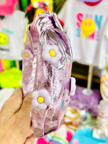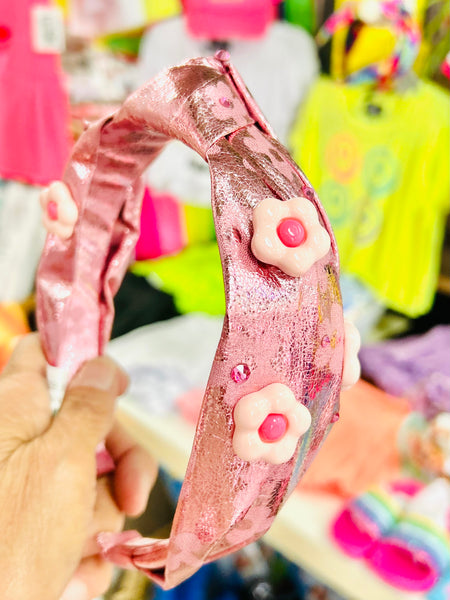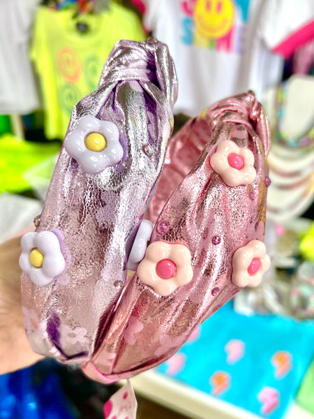 Bari Lynn Metallic Flower Knot Headband