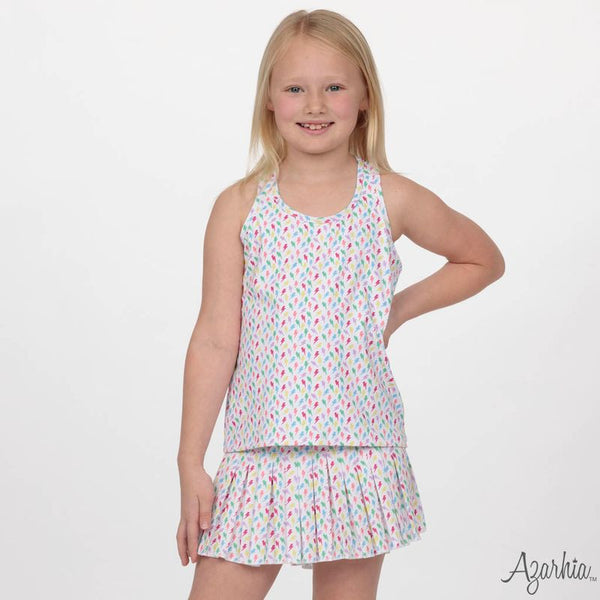 Twirl, skip, and play in the Azarhia Mini Pleat Skort featuring a lightning bolt pattern! This versatile skort combines a flowy pleated skirt with built-in shorts for worry-free movement and comfort. Perfect for active kids who love style, it's available in sizes 4T through YXL, so your little one can grow into it. Whether she's at the playground, school, or a special occasion, this charming piece keeps up with every adventure.