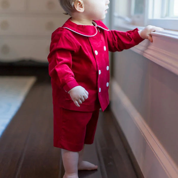 This dressy short set showcases the Watson Plaid in a classic two-piece design which is perfect for any occasion. The tailored top pairs seamlessly with coordinating shorts, creating a polished look that’s comfortable for all-day wear. Soft, breathable fabric keeps kids happy and stylish, making it ideal for holiday events or family gatherings