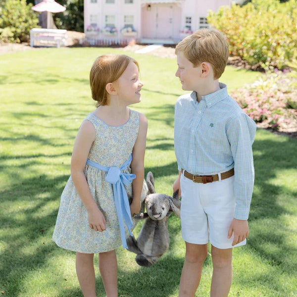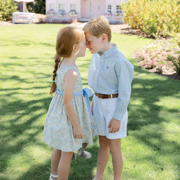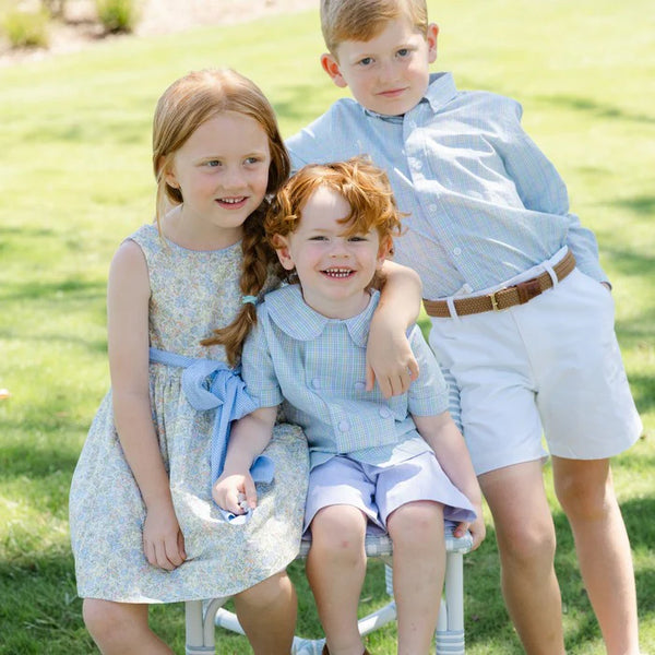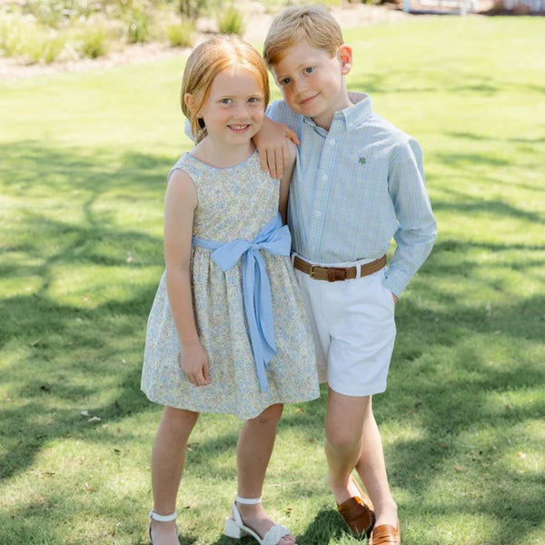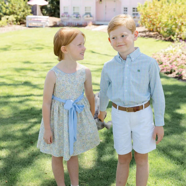 Dress up your dapper young man in this classic windowpane shirt. Featuring a timeless plaid that fits any style, this comfortable shirt is perfect for casual outings and family events. We love the elegant buttons on the cuffs and collar.