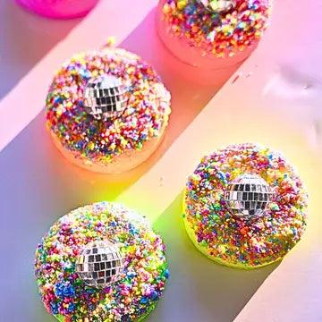Transform bath time into a party with our handmade Disco Donut Bath Bomb!