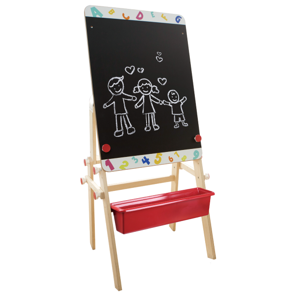 The sturdy 28 x 19 x 48 inch double-faced vertical easel transforms into a 18 x 19 x 20 inch tall horizontal flat play table for multiple play options