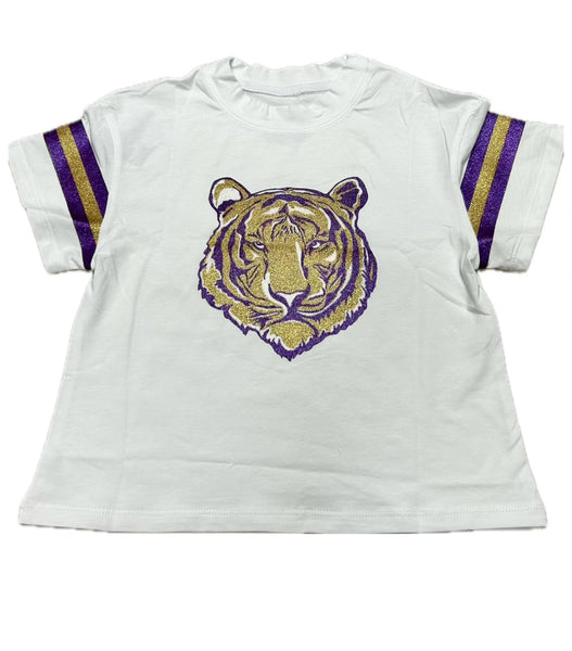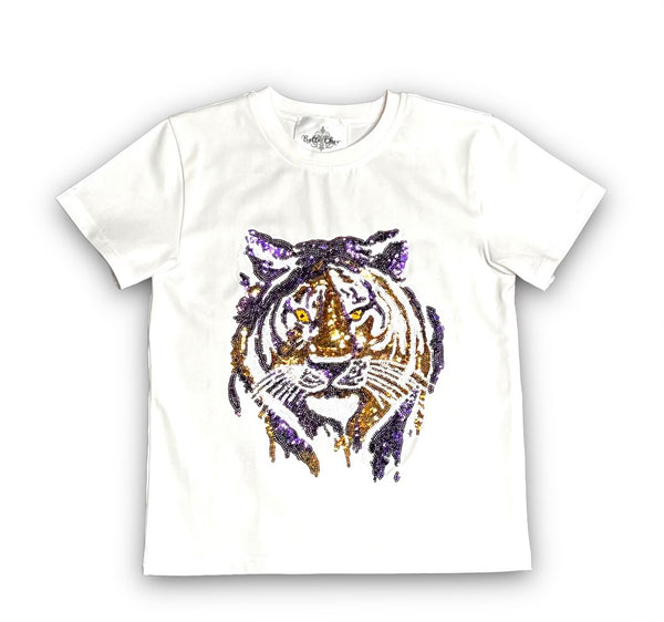 Belle Cher White Purple & Gold Sequin Cheer Tee