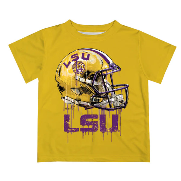 LSU Tigers Dripping Football Helmet Gold Tee Shirt