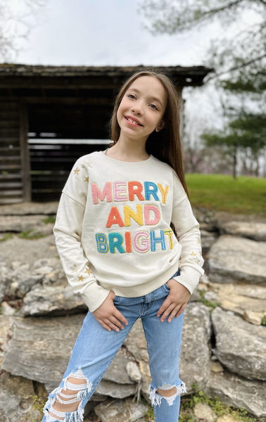 Merry Everything Metallic 3D Embroidery Tween Sweatshirt