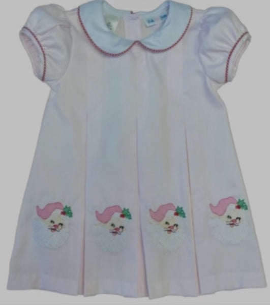 Get ready for the perfect holiday picture in our Lulu Bebe Pink Embroidered Santa Dress! Perfect for Holiday photos.