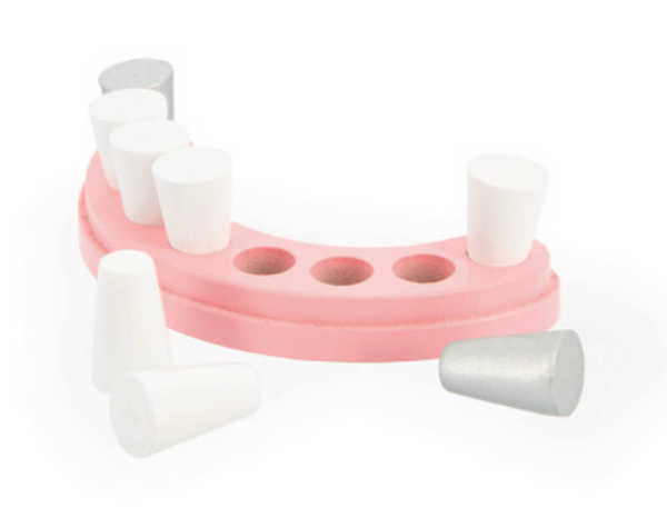Who will pay a visit to the dentist? With this great kit for the perfect dentist, the whole dental surgery comes to the house for moments of play and laughter! Children from 3 years old will be delighted to take the place of the specialist and practice with the many wooden accessories from this case: pliers, a syringe for anaesthesia, dentures with 8 removable teeth, a dental mirror to find the slightest cavity, a drill, a tube of toothpaste and a toothbrush, so that the patient can leave with his little samples! 2 cards illustrating dental X-rays allow children to make their diagnoses. All the elements in very soft colours (water-based paint) can be stored in the transportable case which features a friendly smiling tooth, enough to play down appointments at the dentist!