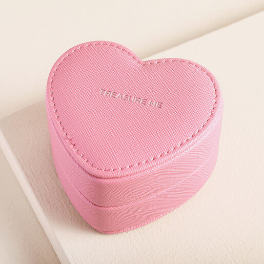 Our pink Mini Heart Jewelry Box features compartments to keep your favorite pieces safe. Its ultra-petite size makes it the perfect accessory for bringing along those treasured pieces in your bag.