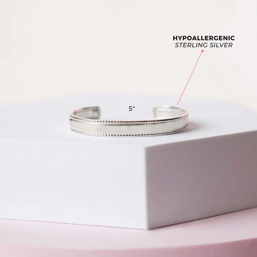 The understated style of this sterling silver cuff bangle bracelet will add style and glam to your little princess. This sterling silver cuff bracelet for baby girls is entirely made of 925 sterling silver perfect for girls with sensitive skin. A shiny finish that will last a lifetime, this piece of jewelry is the perfect gift for a newborn or baptism celebration. A complimentary Window Box is included.