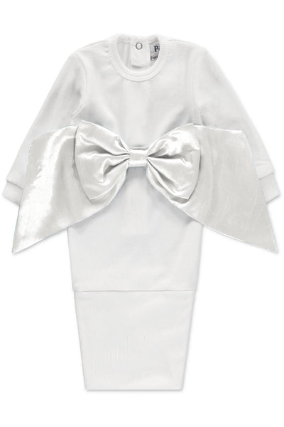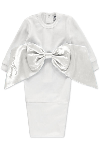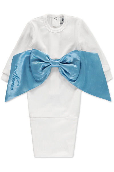 The Carriage Boutique Newborn Receiving Swaddle Bag showcases an adorable bow that adds a touch of charm and personality to this essential baby item. The delightful design lends itself perfectly to personalization, allowing you to monogram your baby's name or initials for that extra special touch. This custom detail not only makes the swaddle sack uniquely yours but also creates a treasured keepsake to cherish as your child grows.