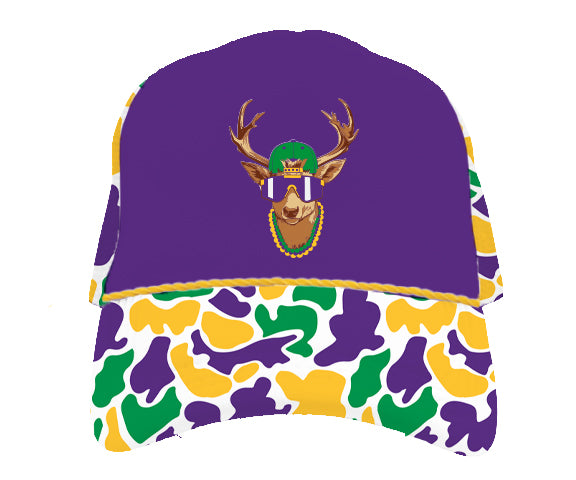 Azarhia Mardi Gras Camo Rope Embroidered Deer Trucker Hat