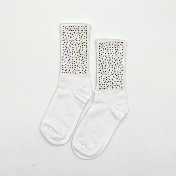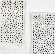 These white socks feature stones in Mardi Gras colors. How cute would these be with your majorette boots. Soft and comfortable this sock is sure to bring a cheerful vibe to any Mardi Gras outfit while offering all-day wearability.