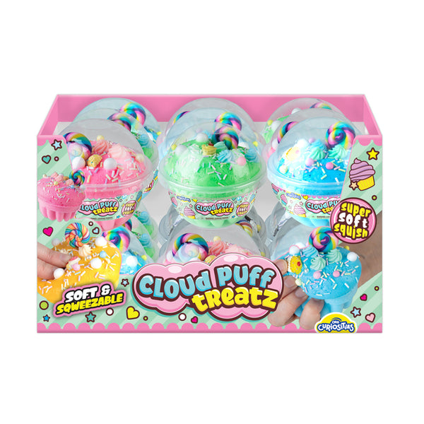 Slow rising Cloud Puff Treats jumbo foam squishies are the perfect toys for stress relief! Give a big squish whenever you need and watch them slowly come back to their original shape. With their soft, comforting, foam texture these kawaii inspired cupcake play food squishies are great options to help relieve stress, anxiety, and boredom. Squeezing and squishing these delightful squishies makes for a uniquely irresistible tactile and sensory experience. Squishy toys like this can even be helpful for those with sensitivities to sensory and visual stimulation
