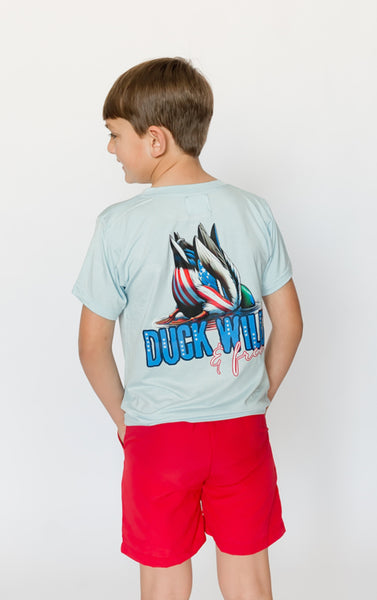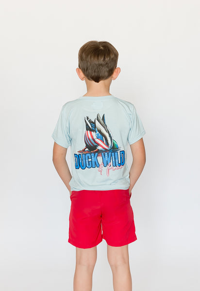 Get ready to show your patriotic style with our Belle Cher DUCK WILD tee! Made from modal, this short sleeved tee is comfortable and features a fun mallrd duck US Flag design on the back,