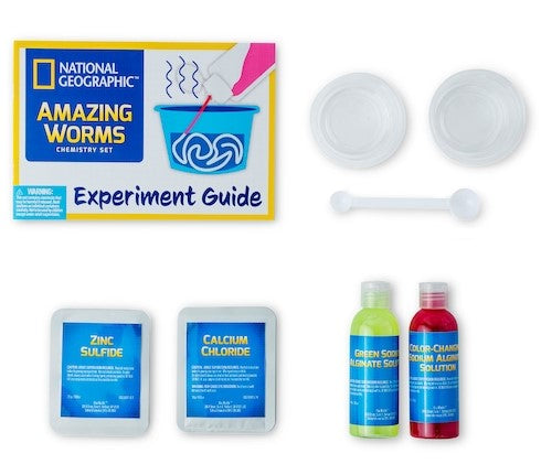 Give your kids a creepy, crawly chemistry kit they’ll love! The National Geographic Amazing Worms Chemistry Kit comes with everything your children need to conduct five unforgettable experiments. They’ll make glow-in-the-dark worms, color-changing worms, worm eggs, and more! A detailed experiment guide takes you step-by-step through each experiment and includes insight into the polymer science and chemical reactions that make this kit so much fun!