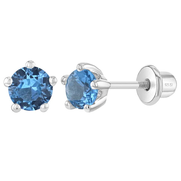 SS Classic CZ Birthstone Solitaire 4mm Screw Back Earrings