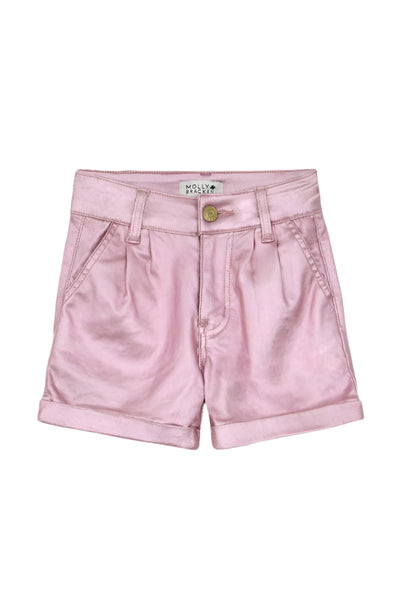 Strike a stylish pose Molly Bracken's Pink Metallic Shorts! These shorts bring the heat with an iridescent look, perfect for any day. Cute and cool, these shorts are a must-have for any fashion-forward wardrobe.