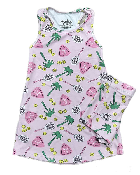 Get ready to serve up some style with the Azarhia Izzy Tennis Dress and Shorts! This athleisure set is perfect for the court with its matching shorts and fun prints, while also keeping you on-trend off the court. Don't let anyone catch you without this Beverly Hills-inspired outfit.