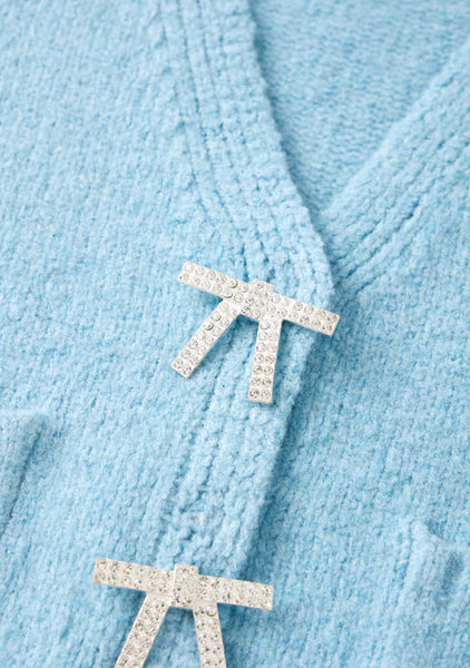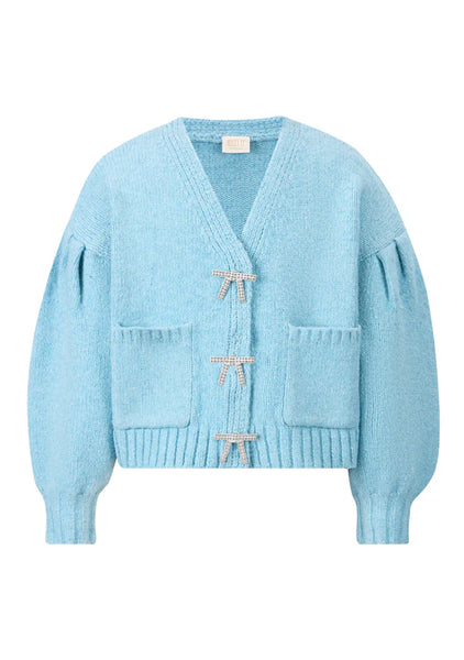 Cozy up in the Lydia Knit Cardigan - a soft, chunky knit that brings comfort and charm to any outfit. The dreamy blue tone and relaxed fit make it perfect for layering during cooler days. Pair it with dresses or denim for an effortlessly sweet look.