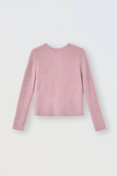 Layer up with the Molly Bracken Knitted Cardigan in Light Pink. This fuzzy knit cardigan features long sleeves, a round neckline, and drop shoulders for a cozy fit. With buttons down the chest, it's perfect for a chilly day.