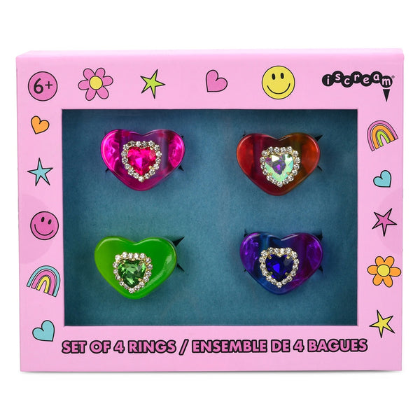 iScream 4Pk Chunky Jeweled Heart Rings