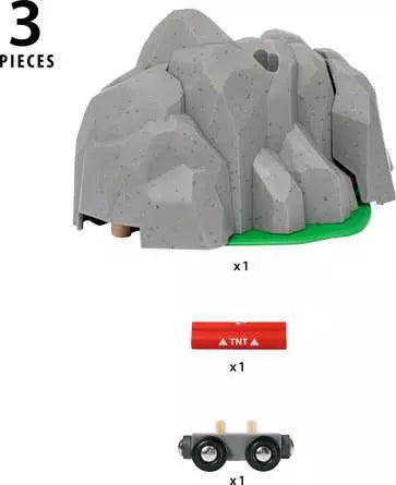 BOOM! Let’s blow open the mountain and drive on through with the 36044 Exploding Tunnel. This large mountain set with realistic stone-finish is a great addition to any BRIO world and conceals a hidden railway passage inside. Insert the TNT into the hole and watch as the mountain explodes to reveal the secret tunnel. Crafted from sturdy plastic and wooden pieces, this train tunnel interlocks easily with other BRIO World toys via the curved wooden track passing through it.