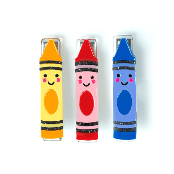 Let your imagination run wild with our colorful crayon alligator clips! Oone trio crayon clip set comes in green, purple, and hot pink, and the other comes in red, blue and yellow. They are the perfect back-to-school accessory. What better way to color your way through the school year?!