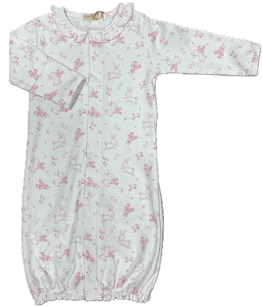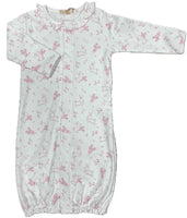 This two in one converter goes from gown to playsuit in just a few snaps. A lovely soft watercolor design print and a ruffle along the neckline make this outfit extra special.