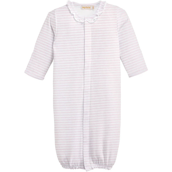 Unleash your little one's stylish side with our Baby Club Chic Pink Stripes Converter Gown. Made with ultra-soft Pima Cotton, this gown features a unique converter design that easily transforms into a romper for added versatility. The perfect blend of fashion and function!
