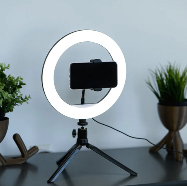 This premium Beauty Ring Light is equipped with a tripod stand that can swivel 360 degrees and remain locked into any desired position. This 10 inch Beauty Ring Light features three lighting modes: White, Warm White and Warm Yellow. Each lighting mode has 11 adjustable brightness levels to capture that perfect lighting!