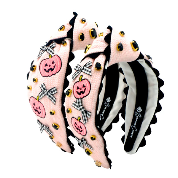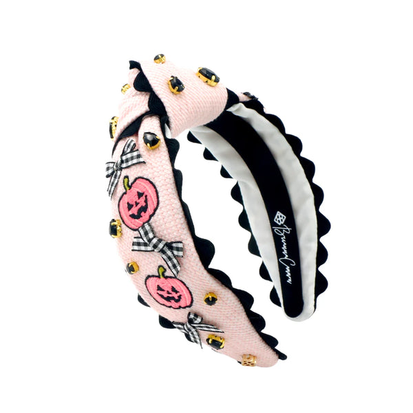Brianna Cannon Pink Cross-Stitch Halloween Headband with Embroidered Pumpkins