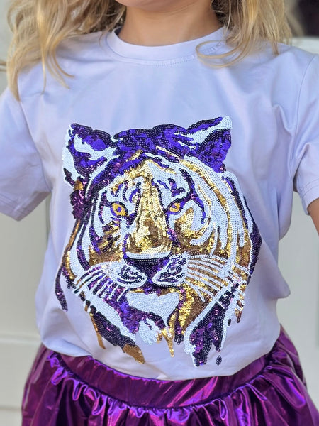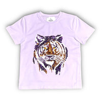 Child Sequin Tiger Face S/S Gameday Tee - Lavender