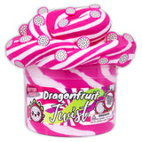 Swirled white and dragonfruit colored butter slime scented just like dragonfruit! Topped with the cutest fimo slices! Such a soft and spreadable butter slime, plus it inflates a ton!
