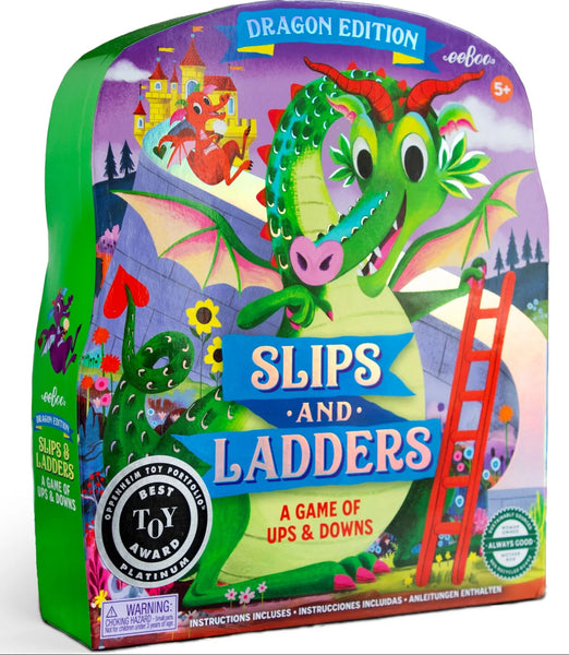 Artists Kevin Hawkes and Linda Bleck reimagine this classic game with whimsical dragons. Holographic foil adds shine to the cover, board and playing pieces. Land on a slide and slip to a lower square; land on a ladder and climb toward the finish line!