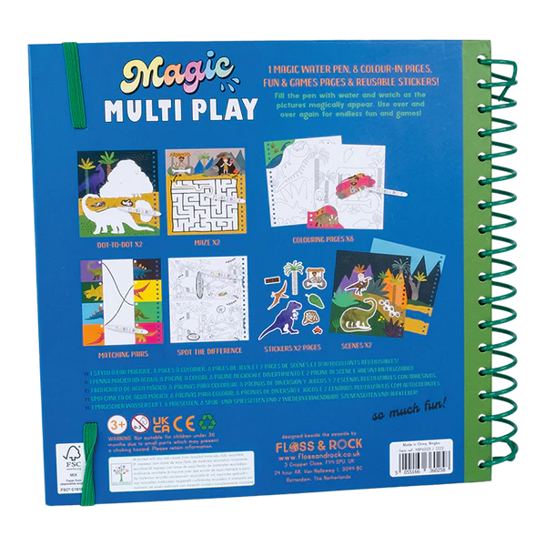 There really is so much fun to be had with our Magic Multi Play, jam packed with reusable activities. Inside the spiral bound book you’ll find 8 pages to color-in, 2 dot-to-dot pages, 2 maze activities, matching pairs, spot the difference, 2 pages of reusable stickers and 2 scenes to decorate! Like our extremely popular Magic Water range, fill up the pen provided with water and watch as the pictures magically appear. Use it over and over again and, when playtime’s over use the elastic closure to keep everything neatly together for next time.
