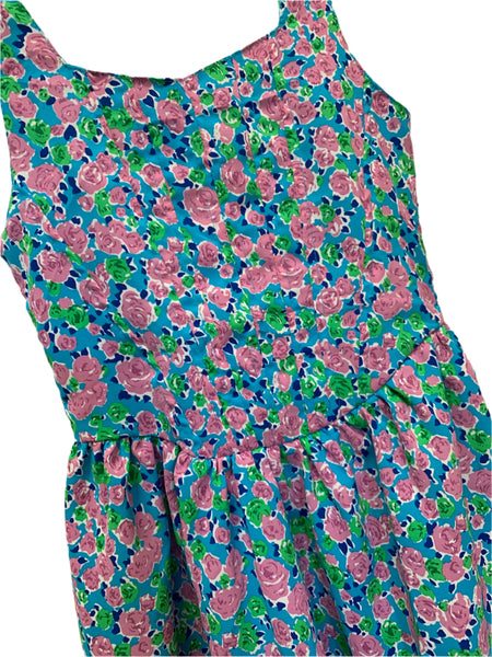 Get ready to bloom with style in this playful blue and pink floral dress from Flowers by Zoe! With a sleeveless design and yoke waist, this dress is perfect for all your fun spring and summer adventures. Let your personality shine through with this fun and colorful piece.