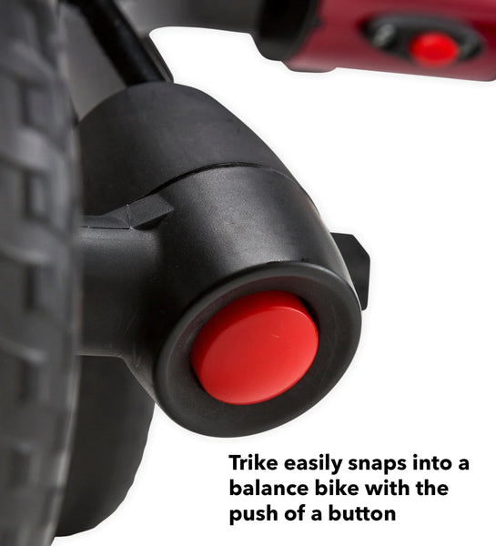 As if a quick-snap folding Tricycle and Balance Bike-in-one were not enough, our modern, streamlined One2Go™ 2-in-1 Folding Trike with Bike has a classic red push-button bell that kids love to use to announce their arrival! A great choice for growing youngsters, this sturdy metal trike snaps into balance bike position as your child gains strength and confidence.