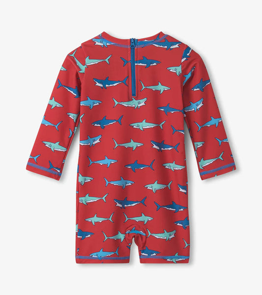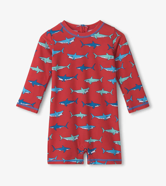 Let your little guy take a bite out of summer fun with the Baby Boys Hungry Sharks One-Piece Rashguard! This chomptastic design offers full coverage and UV protection for all-day adventures. Soft and stretchy for ultimate comfort, it’s a shark-loving baby’s dream.