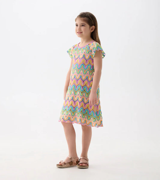 The Girls Rainbow Waves Crochet Dress is a colorful standout! Crafted from lightweight polyester, this dress features a beautiful crochet design in vibrant rainbow waves. Perfect for summer outings, family photos, or special occasions, it’s as comfortable as it is eye-catching.
