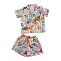 Get ready for summer camp in style with our Kids Summer Camp Silky Satin PJ Set! Made with luxurious satin poly fabric, this 2 piece set features a notch collar button front top with short sleeves, and elastic waist short for maximum comfort. The colorful summer camp print adds a fun and playful touch to this stylish and comfortable pajama set.
