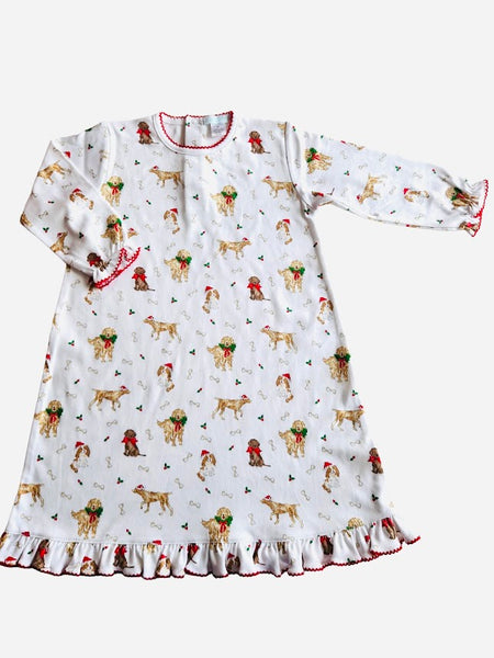 Experience a dreamy night's sleep in our LaLuna Santa Puppy Nightgown. Made from luxurious pima knit, this long-sleeved nightgown will keep you cozy and comfortable all night long.