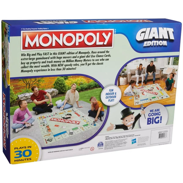 GIANT SIZED & EXTRA FUN: Race around the extra-large Monopoly gameboard with huge movers and a giant die! It’s simple, active gameplay in the GIANT version of the fast-dealing property trading game.
