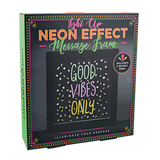 Maintain good vibes with this wonderful Neon Effect Message Frame. Use the included colored marker pens to write your message of positivity, before proudly displaying the frame and illuminating your feel-good message.