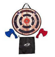 INCLUDES: 2 lightweight foam axes wrapped in Velcro to easily stick & stay on target, 1 large 25” diameter cloth target that folds for easy storage, door hanger, suction cup, & drawstring carry bag.