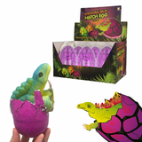 Dinosaur Hatching Eggs: Travel back in time and hatch your very own prehistoric pet. Available in three bright colors and featuring the most popular dinosaurs: orange T-Rex eggs; green Triceratops eggs; and purple Stegosaurus eggs. These eggs are an amazing learning experience for every child.