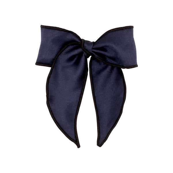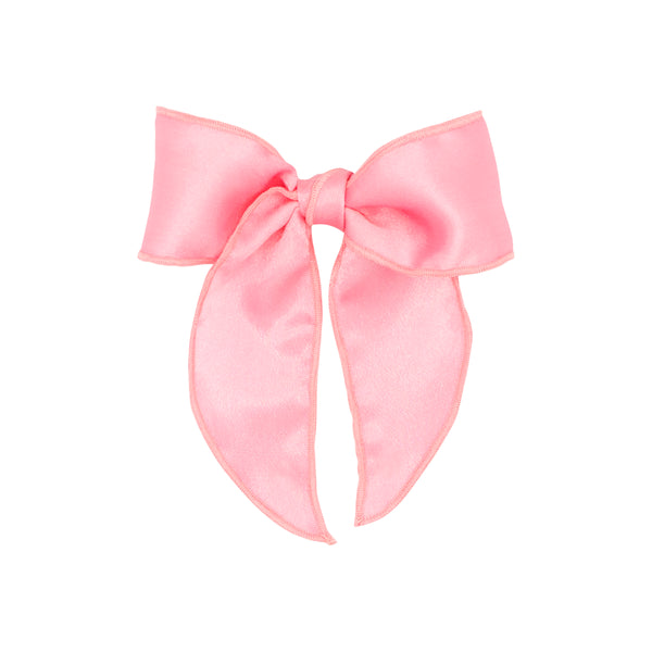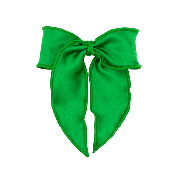 Add this perfect accessory to give your little one an extra dose of cuteness! From the eye-catching satin fabric to the whimsical bow tails, this piece is sure to make her hair day extraordinary! The whimsy tails are 7 inches in length. This bow is sure to stay in her hair all day with our patented WeeStay™ no-slip hair clip. Available in a variety of colors.