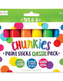 When you want to paint colorful pictures but want to leave the mess behind then it's time to reach for Chunkies Paint Sticks. Chunkies are super easy to use, clean and portable because they're like painting with a crayon. Just uncap, twist and start painting. Chunkies comes in a set of 6 different colored paint sticks each in a thick barreled casing so they're easy for little hands to hold. The paint colors are quick drying and won't smudge, but it's easy to mix colors to make even more colors. It's magic! Care and use recommendations: Keep capped when not in use, to help prevent drying. Cover and protect your workspace. This product may stain some surfaces.