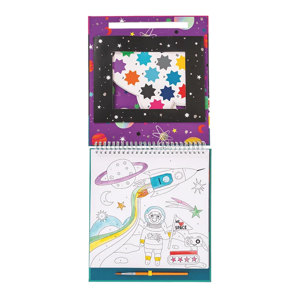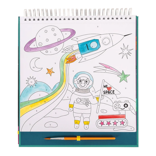 Our Space Paint by Numbers contains 10 pictures in a spiral bound pad, featuring astronauts, aliens, UFOs and much more. Each page has a perforated edge making it super easy to tear out your artwork and frame or hang your masterpiece! Each Paint by Numbers set also comes with 10 individual paint palettes and a paintbrush, plus an elastic closure to keep everything neatly together.