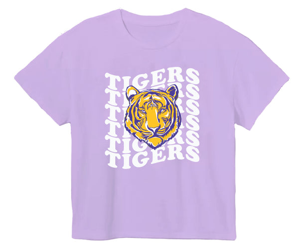 Show your wild side and support your team with this purr-fectly stylish Purple Tigers Glitter Tee! Featuring a sparkly tiger face on a dark lavender tee, this shirt is the perfect way to show your team pride on gameday, while adding a touch of glittery finesse! Roar-some!