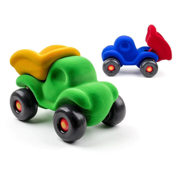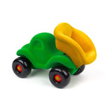 The Rubbabu Dump Truck is a colorful, soft and safe truck made from our signature natural rubber foam with a soft velvet-like flocked finish. It has a body that lifts up, soft rubber foam wheels, and rolls smoothly and easily.